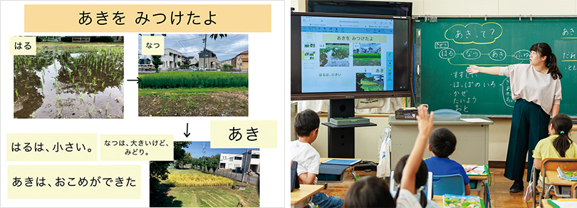 そして今回、[発表ノート]を使って田んぼや木々の四季による違いを示した子どもが複数名いました。これまでは写真フォルダを一生懸命スライドして見せていたけれど、[発表ノート]なら同じページに複数枚の写真を貼り、一度に比較できた。この成功体験は、喜びと自信につながったと思います。