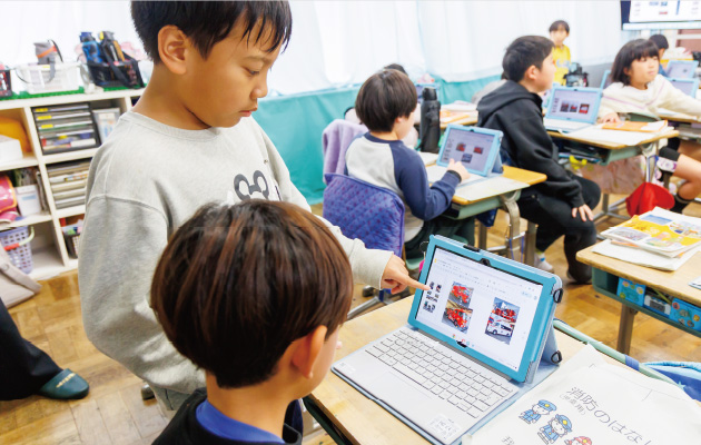 こうした教え合いは、ほかの授業でも取り入れています。「自力でやりたい」と思う児童は多いので、席を立ってサポートに行く子が出始めると、「早く教える側になろう」と、より頑張るようになります。また、普段の問題を解く場面などでは教わる機会の多い子が、ICT活用の場面では逆に教える側に回るケースもあり、児童の自信につながっていると感じます。